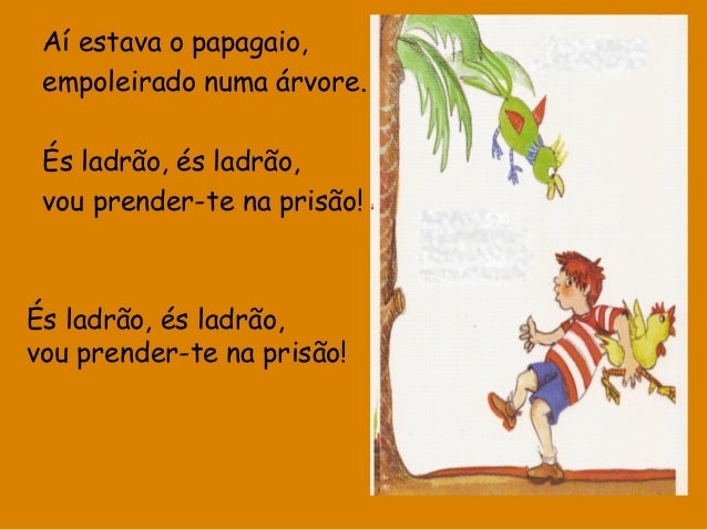 36. 36. Aí estava o papagaio, empoleirado numa árvore. És ladrão, és ladrão, vou prender-te na prisão! És ladrão, és ladrão, vou prender-te na prisão!