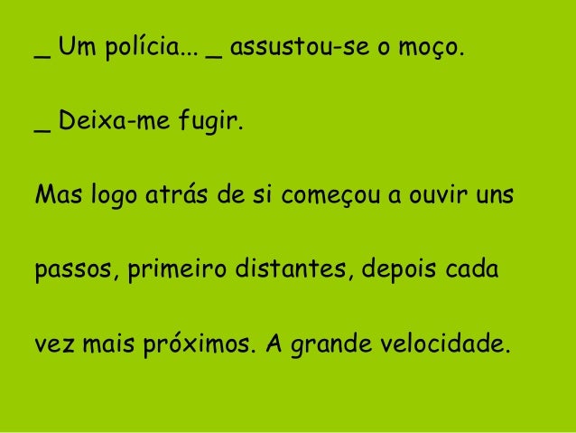 37. 37. _ Um polícia... _ assustou-se o moço. _ Deixa-me fugir. Mas logo atrás de si começou a ouvir uns passos, primeiro distantes, depois cada vez mais próximos. A grande velocidade.
