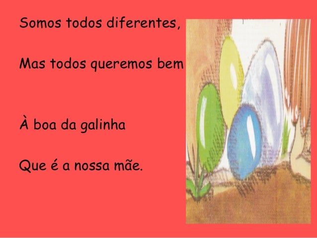 43. 43. Somos todos diferentes, Mas todos queremos bem À boa da galinha Que é a nossa mãe.