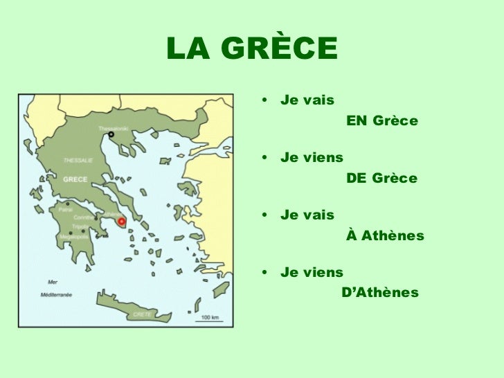 16. 16. LA GRÈCE <ul><li>Je vais </li></ul><ul><li> EN Grèce </li></ul><ul><li>Je viens </li></ul><ul><li> DE Grèce </li></ul><ul><li>Je vais </li></ul><ul><li> À Athènes </li></ul><ul><li>Je viens </li></ul><ul><li> D’Athènes </li></ul>