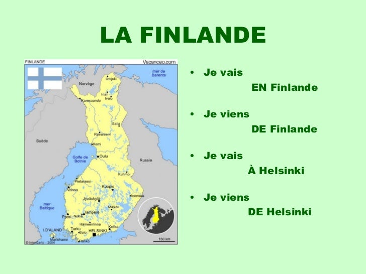 20. 20. LA FINLANDE <ul><li>Je vais </li></ul><ul><li> EN Finlande </li></ul><ul><li>Je viens </li></ul><ul><li> DE Finlande </li></ul><ul><li>Je vais </li></ul><ul><li> À Helsinki </li></ul><ul><li>Je viens </li></ul><ul><li> DE Helsinki </li></ul>