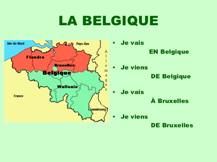 8. 8. LA BELGIQUE <ul><li>Je vais </li></ul><ul><li> EN Belgique </li></ul><ul><li>Je viens </li></ul><ul><li> DE Belgique </li></ul><ul><li>Je vais </li></ul><ul><li> À Bruxelles </li></ul><ul><li>Je viens </li></ul><ul><li> DE Bruxelles </li></ul>