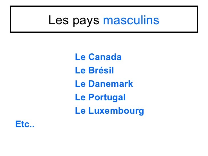 3. 3. Les pays masculins Le Canada Le Brésil Le Danemark Le Portugal Le LuxembourgEtc..