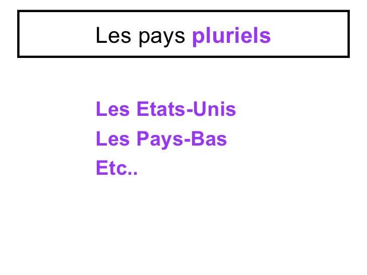 Les pays plurielsLes Etats-UnisLes Pays-BasEtc..
