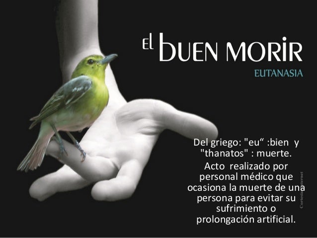 2. 2. Del griego: "eu“ :bien y"thanatos" : muerte.Acto realizado porpersonal médico queocasiona la muerte de unapersona para evitar susufrimiento oprolongación artificial.
