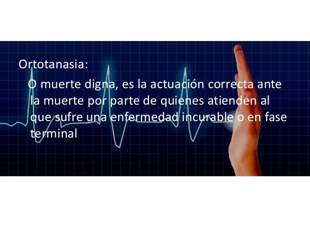 4. 4. Ortotanasia:O muerte digna, es la actuación correcta antela muerte por parte de quienes atienden alque sufre una enfermedad incurable o en faseterminal.