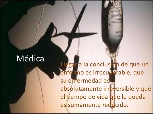 8. 8. MédicaLlegar a la conclusión de que unenfermo es irrecuperable, quesu enfermedad esabsolutamente irreversible y queel tiempo de vida que le quedaes sumamente reducido.