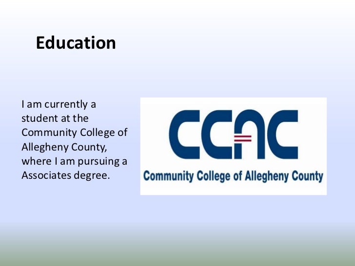 10. 10. Education<br />I am currently a student at the Community College of Allegheny County, where I am pursuing a Associates degree.<br />