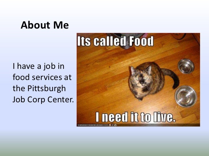 4. 4. About Me<br />I have a job in food services at the Pittsburgh Job Corp Center.<br />