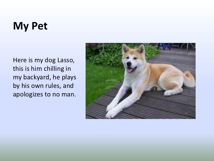 7. 7. My Pet<br />Here is my dog Lasso, this is him chilling in my backyard, he plays by his own rules, and apologizes to no man.<br />