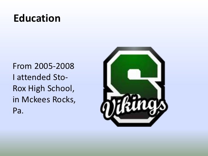 8. 8. Education<br />From 2005-2008 I attended Sto-Rox High School, in Mckees Rocks, Pa.<br />