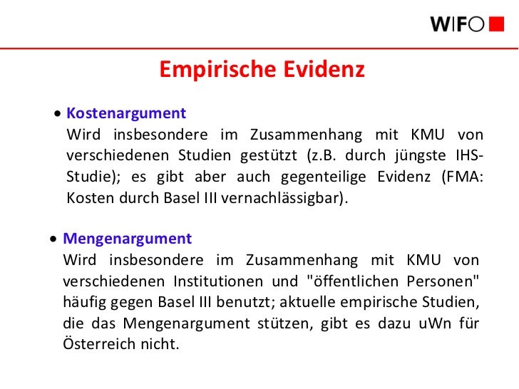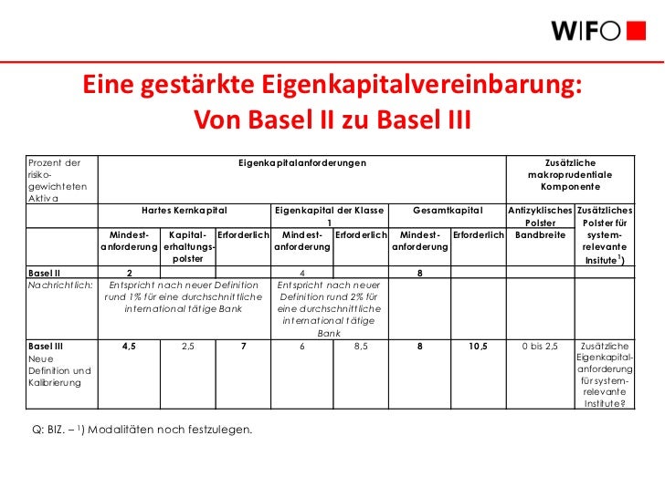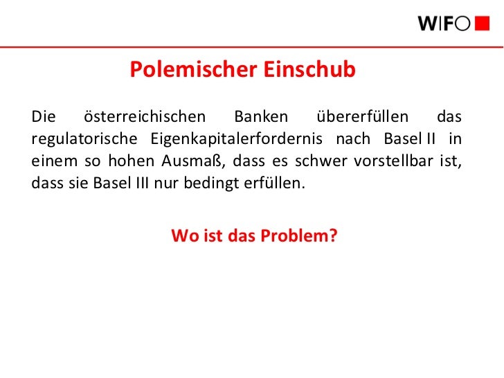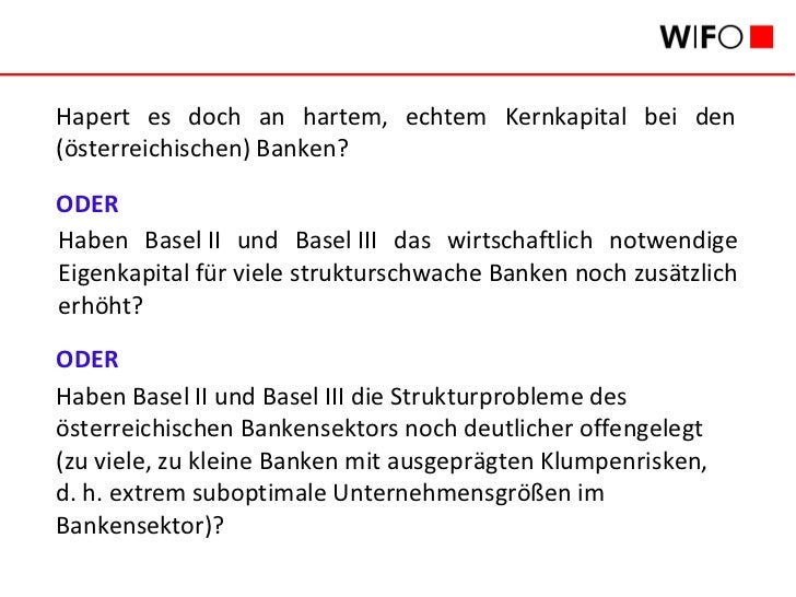 Franz R. Hahn, Mitarbeiter des Österreichischen Wirtschaftsforschungsinstitutes WIFO, analysiert die Auswirkungen von BaseI III auf die Finanzierungspraxis der österreichischen Banken. Er findet, dass die österreichischen Banken das regulatorische Eigenkapitalerfordernis nach Basel II in einem so hohen Ausmaß übererfüllen, dass es schwer vorstellbar ist, dass sie Basel III nicht nachkommen.