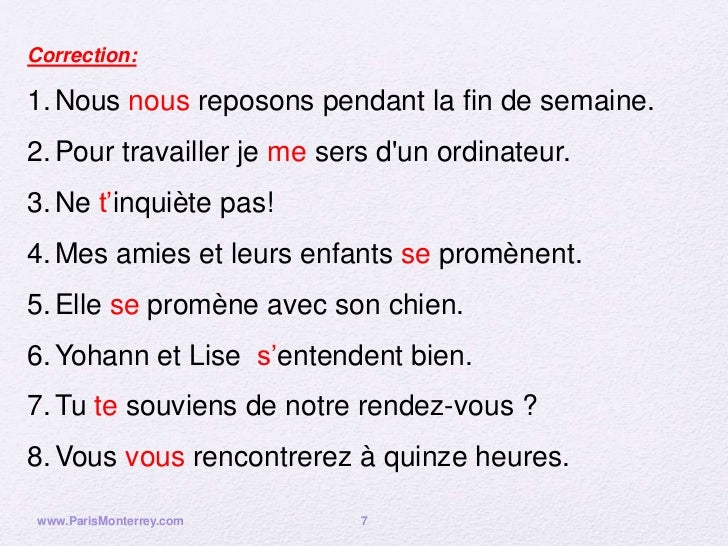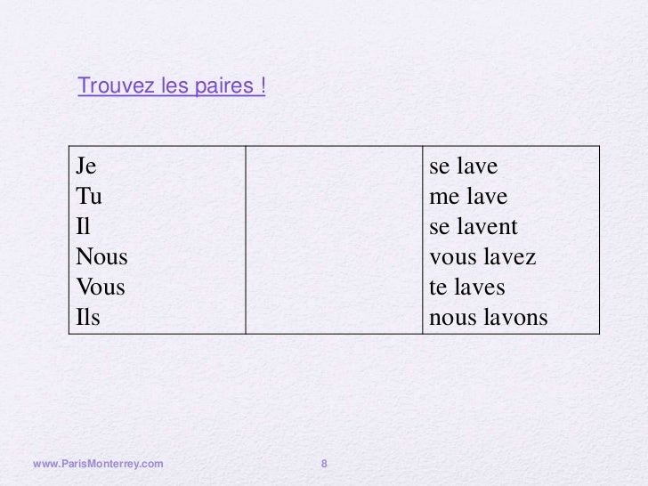 Pronominal verbs in french and daily activities.