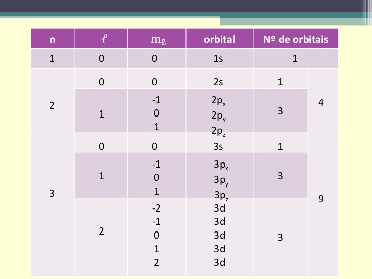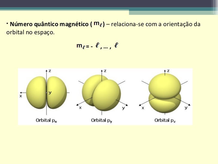 <ul><li>Número quântico de momento angular, secundário ou azimutal (  )  – relaciona-se com a forma da orbital. </li></ul>...