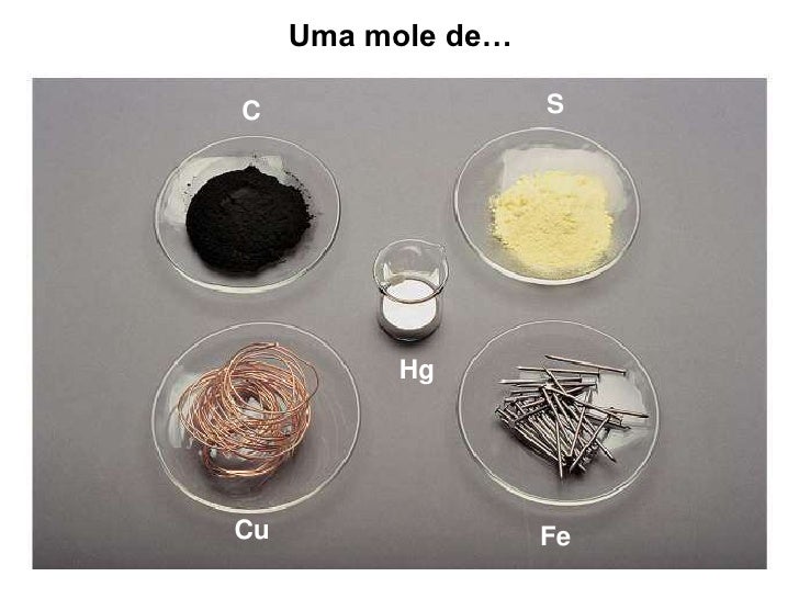 5. 5. 5<br />Uma mole de…<br />S<br />C<br />Hg<br />Cu<br />Fe<br />