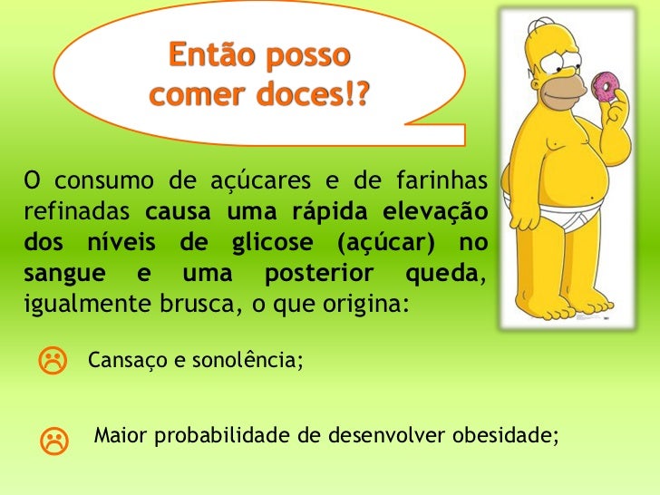 Então posso          comer doces!?O consumo de açúcares e de farinhasrefinadas causa uma rápida elevaçãodos níveis de glic...