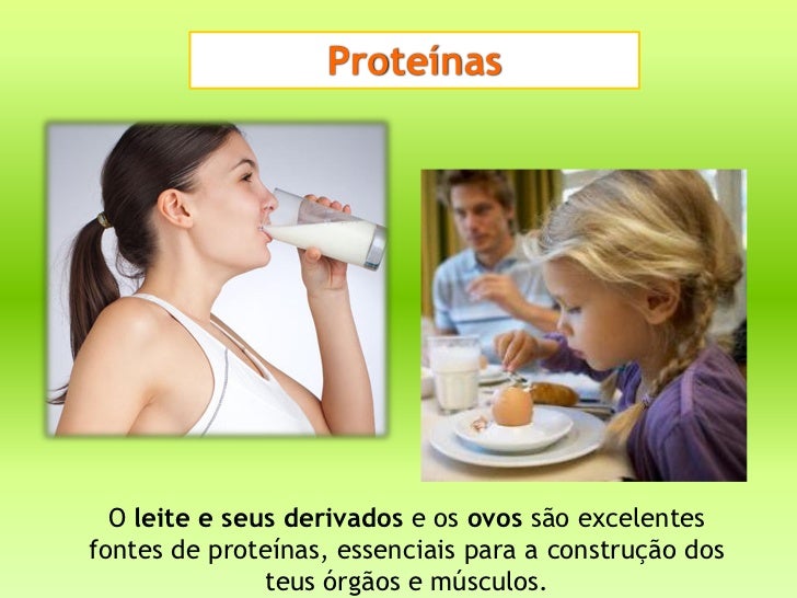 Proteínas  O leite e seus derivados e os ovos são excelentesfontes de proteínas, essenciais para a construção dos         ...