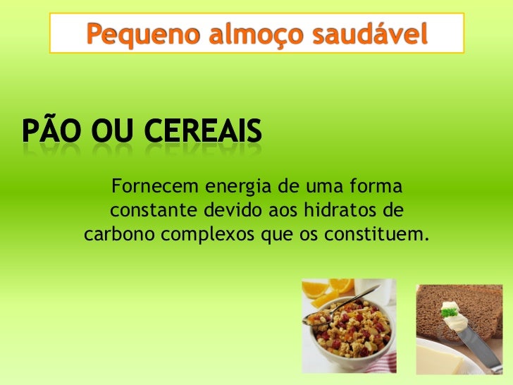 Pequeno almoço saudável   Fornecem energia de uma forma   constante devido aos hidratos decarbono complexos que os constit...