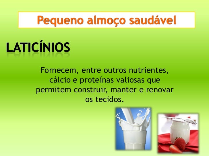 Pequeno almoço saudável Fornecem, entre outros nutrientes,   cálcio e proteínas valiosas quepermitem construir, manter e r...