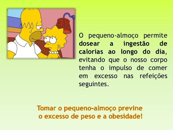 O pequeno-almoço permitedosear a ingestão decalorias ao longo do dia,evitando que o nosso corpotenha o impulso de comerem ...