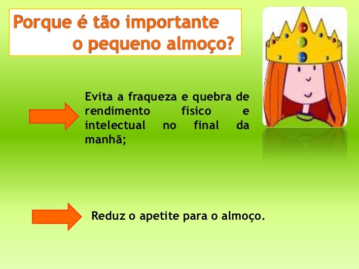 Porque é tão importante      o pequeno almoço?       Evita a fraqueza e quebra de       rendimento       físico    e      ...