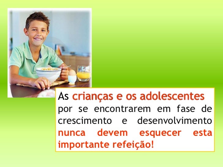4. 4. As crianças e os adolescentespor se encontrarem em fase decrescimento e desenvolvimentonunca devem esquecer estaimportante refeição!