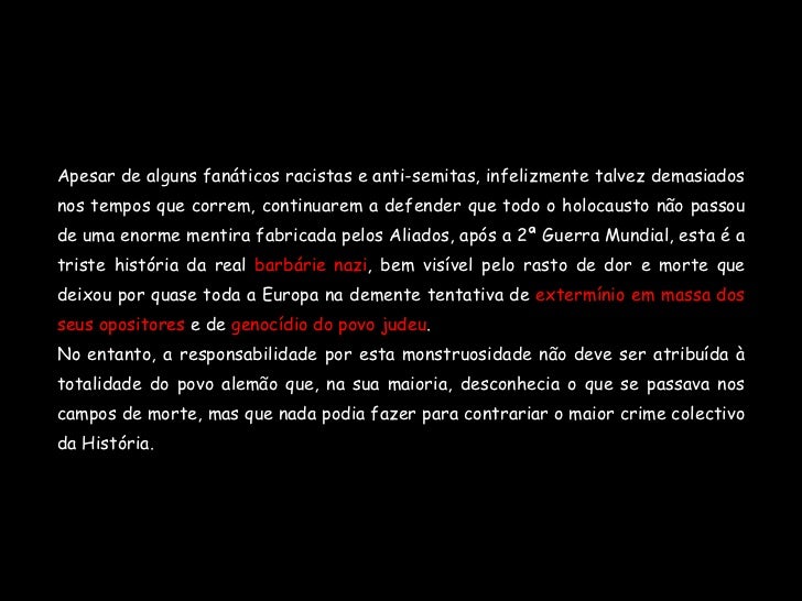 Apresentação do professor Rui Neto numa aula de História do 9º ano sobre o Holocausto. É acompanhado de música e de dois vídeos.