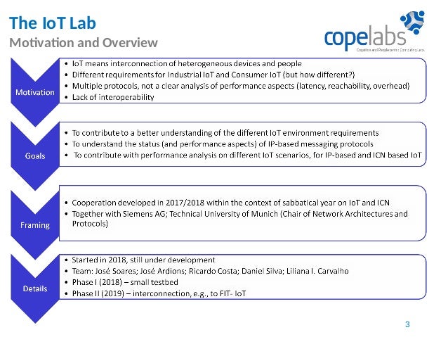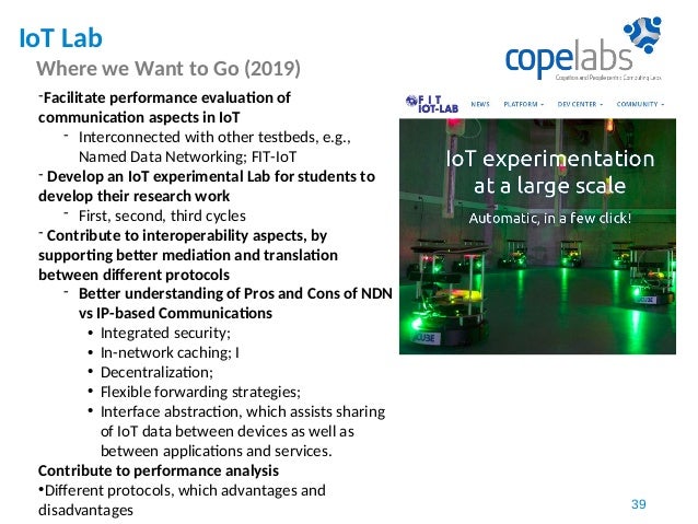 Presentation of the experimental IoT testbed being developd at COPELABS/ULHT in 2018/2019.