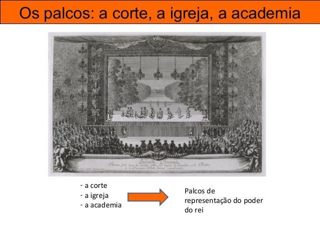26. 26. Os palcos: a corte, a igreja, a academia - a corte - a igreja - a academia Palcos de representação do poder do rei