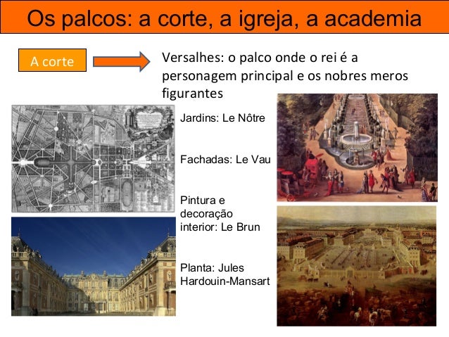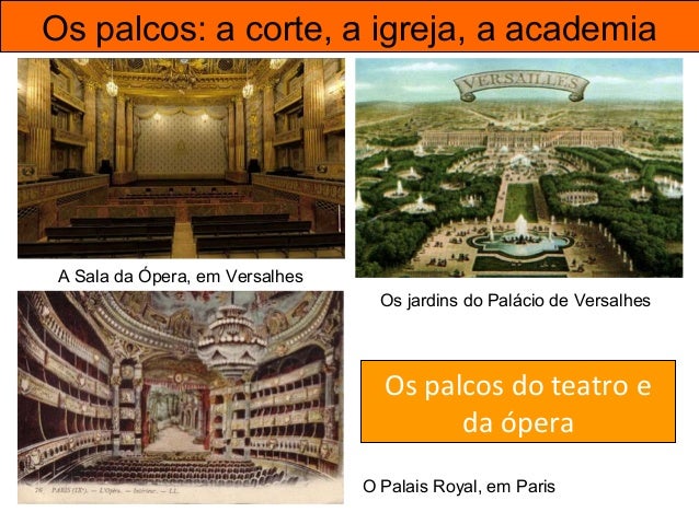 34. 34. Os palcos: a corte, a igreja, a academia Os palcos do teatro e da ópera A Sala da Ópera, em Versalhes Os jardins do Palácio de Versalhes O Palais Royal, em Paris