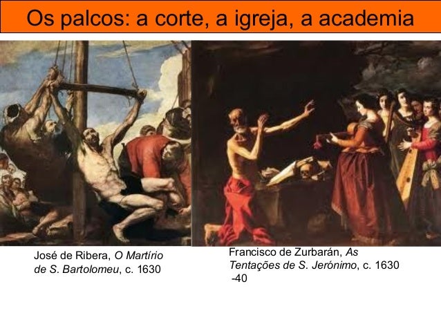 45. 45. Os palcos: a corte, a igreja, a academia José de Ribera, O Martírio de S. Bartolomeu, c. 1630 Francisco de Zurbarán, As Tentações de S. Jerónimo, c. 1630 -40