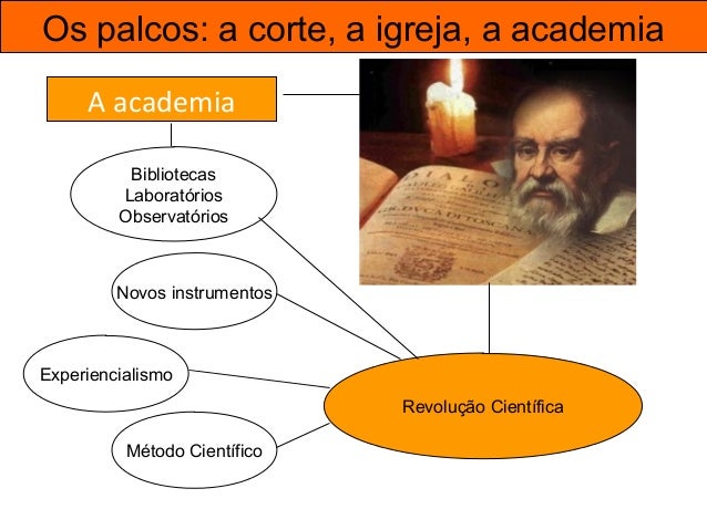 48. 48. Os palcos: a corte, a igreja, a academia A academia Revolução Científica Bibliotecas Laboratórios Observatórios Novos instrumentos Experiencialismo Método Científico