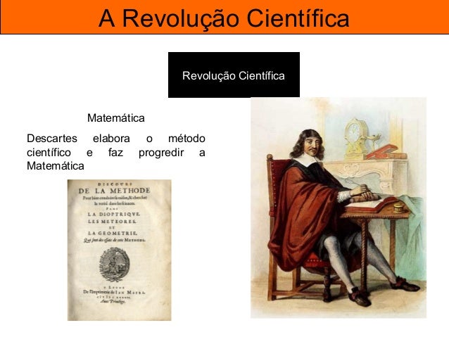 49. 49. A Revolução Científica Revolução Científica Matemática Descartes elabora o método científico e faz progredir a Matemática