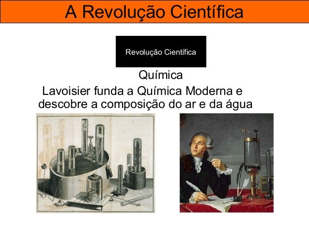54. 54. A Revolução Científica Revolução Científica Química Lavoisier funda a Química Moderna e descobre a composição do ar e da água