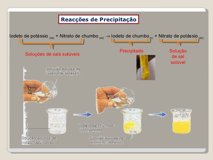 37. 38. Reacções de Precipitação Iodeto de potássio (aq) + Nitrato de chumbo (aq)  Iodeto de chumbo (s) + Nitrato de potássio (aq) Soluções de sais solúveis Precipitado Solução de sal solúvel