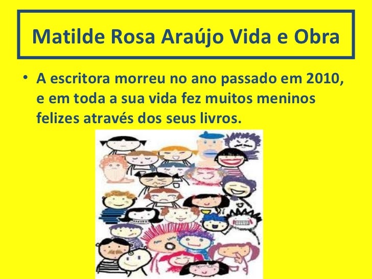 11. 11. Matilde Rosa Araújo Vida e Obra <ul><li>A escritora morreu no ano passado em 2010, e em toda a sua vida fez muitos meninos felizes através dos seus livros. </li></ul>