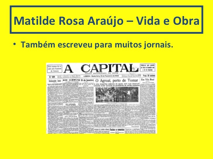 5. 5. Matilde Rosa Araújo – Vida e Obra <ul><li>Também escreveu para muitos jornais. </li></ul>