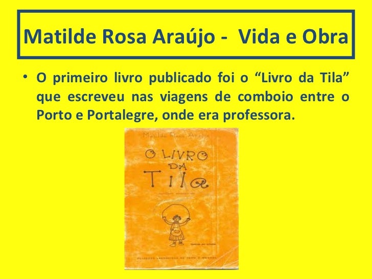 8. 8. Matilde Rosa Araújo - Vida e Obra <ul><li>O primeiro livro publicado foi o “Livro da Tila” que escreveu nas viagens de comboio entre o Porto e Portalegre, onde era professora. </li></ul>