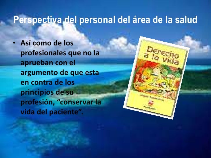 14. 14. Perspectiva del personal del área de la salud• Así como de los profesionales que no la aprueban con el argumento de que esta en contra de los principios de su profesión, “conservar la vida del paciente”.