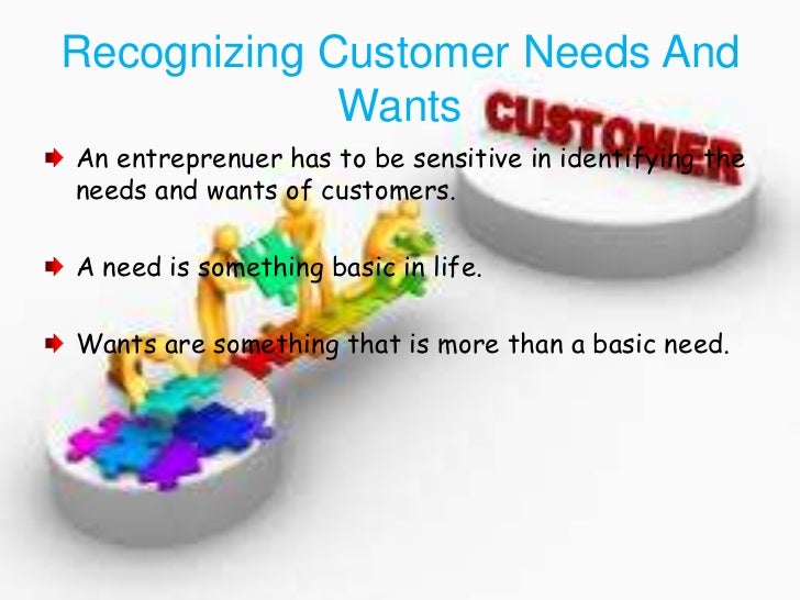 10. 10. Recognizing Customer Needs And WantsAn entreprenuer has to be sensitive in identifying theneeds and wants of customers.A need is something basic in life.Wants are something that is more than a basic need.