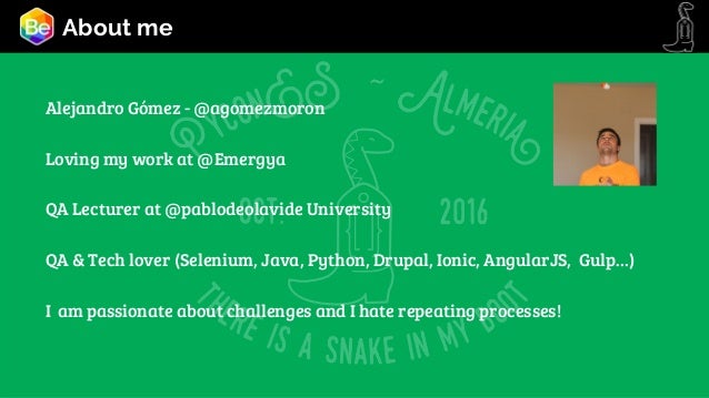 We will focus the talk in how a team should manage a Python project from the QA side, showing how a team of developers and QA build a real team.
