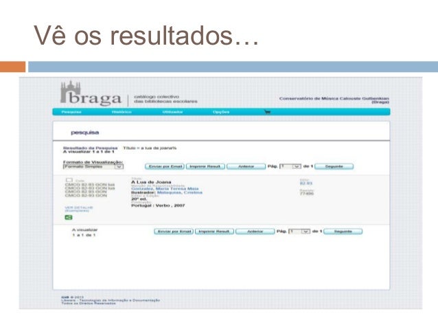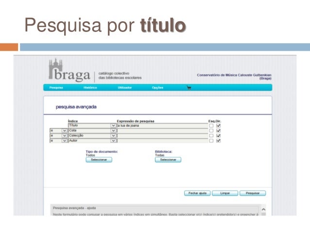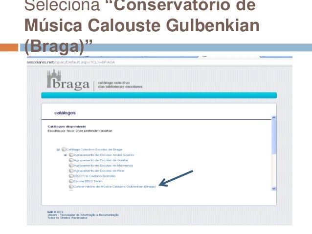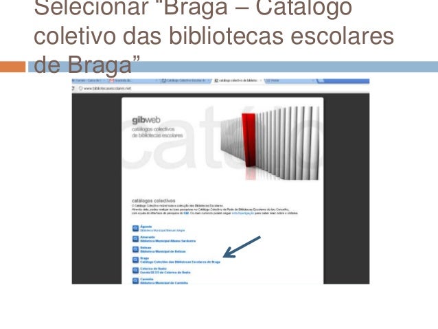 4. 4. Selecionar “Braga – Catálogocoletivo das bibliotecas escolaresde Braga”