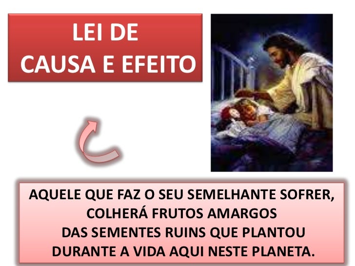 44. 44. 44<br />LEI DE<br /> CAUSA E EFEITO<br />AQUELE QUE FAZ O SEU SEMELHANTE SOFRER, COLHERÁ FRUTOS AMARGOS<br /> DAS SEMENTES RUINS QUE PLANTOU<br /> DURANTE A VIDA AQUI NESTE PLANETA.<br />