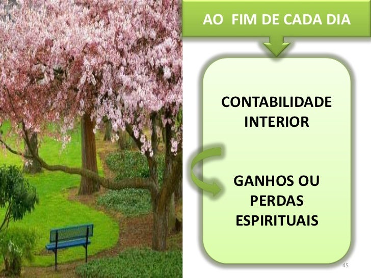 45. 45. AO FIM DE CADA DIA<br />CONTABILIDADE INTERIOR<br />GANHOS OU PERDAS ESPIRITUAIS<br />45<br />