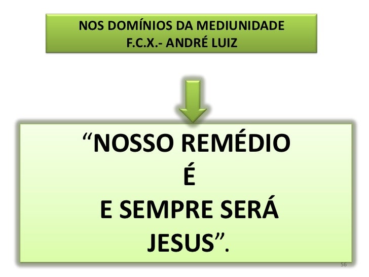 56. 56. 56<br />NOS DOMÍNIOS DA MEDIUNIDADE<br />F.C.X.- ANDRÉ LUIZ<br />“NOSSO REMÉDIO<br /> É<br /> E SEMPRE SERÁ <br /> JESUS”.<br />