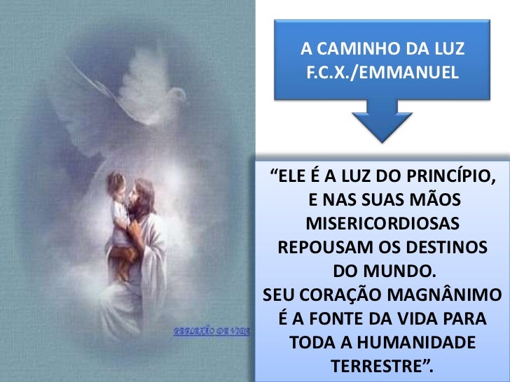 68. 68. 68<br />A CAMINHO DA LUZ<br />F.C.X./EMMANUEL<br />“ELE É A LUZ DO PRINCÍPIO,<br /> E NAS SUAS MÃOS MISERICORDIOSAS REPOUSAM OS DESTINOS<br /> DO MUNDO. <br />SEU CORAÇÃO MAGNÂNIMO É A FONTE DA VIDA PARA TODA A HUMANIDADE TERRESTRE”.<br />