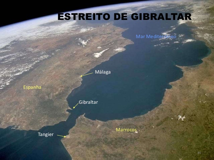 85. 85. ESTREITO DE GIBRALTAR<br />Mar Mediterrâneo<br />Málaga<br />Espanha<br />Gibraltar<br />Marrocos<br />Tangier<br />85<br />