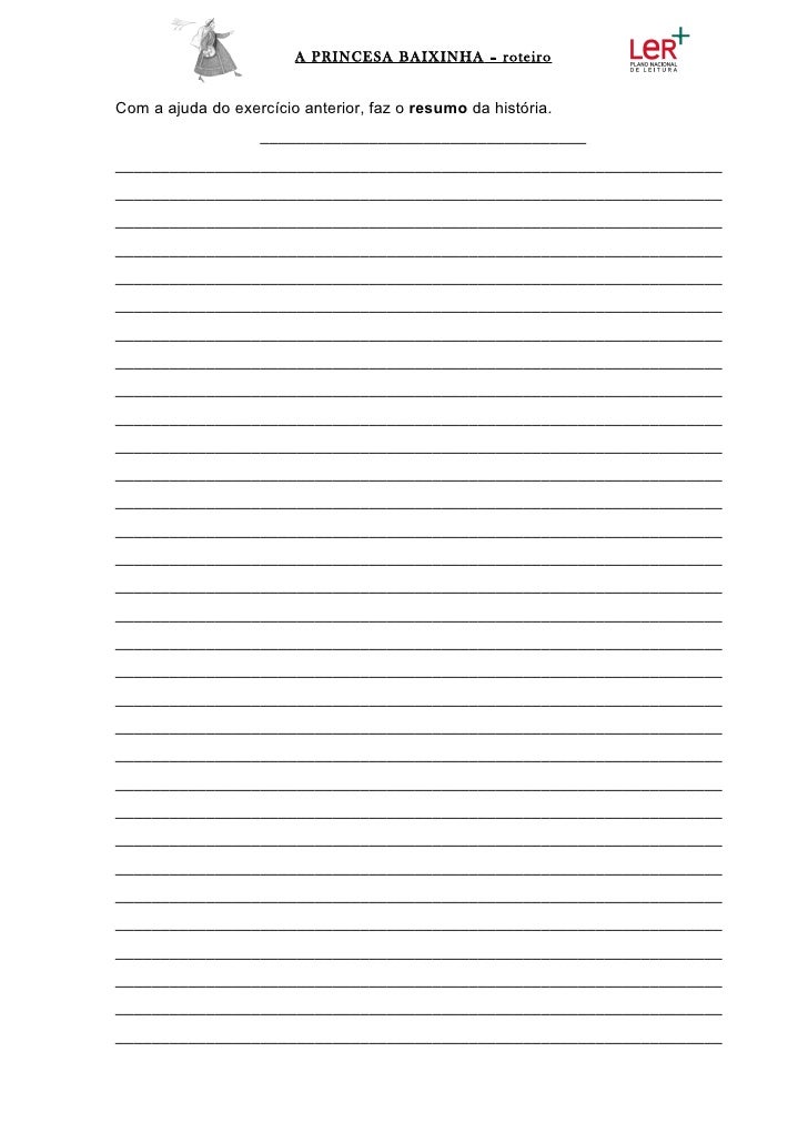 A PRINCESA BAIXINHA – roteiroCom a ajuda do exercício anterior, faz o resumo da história.                   ______________...