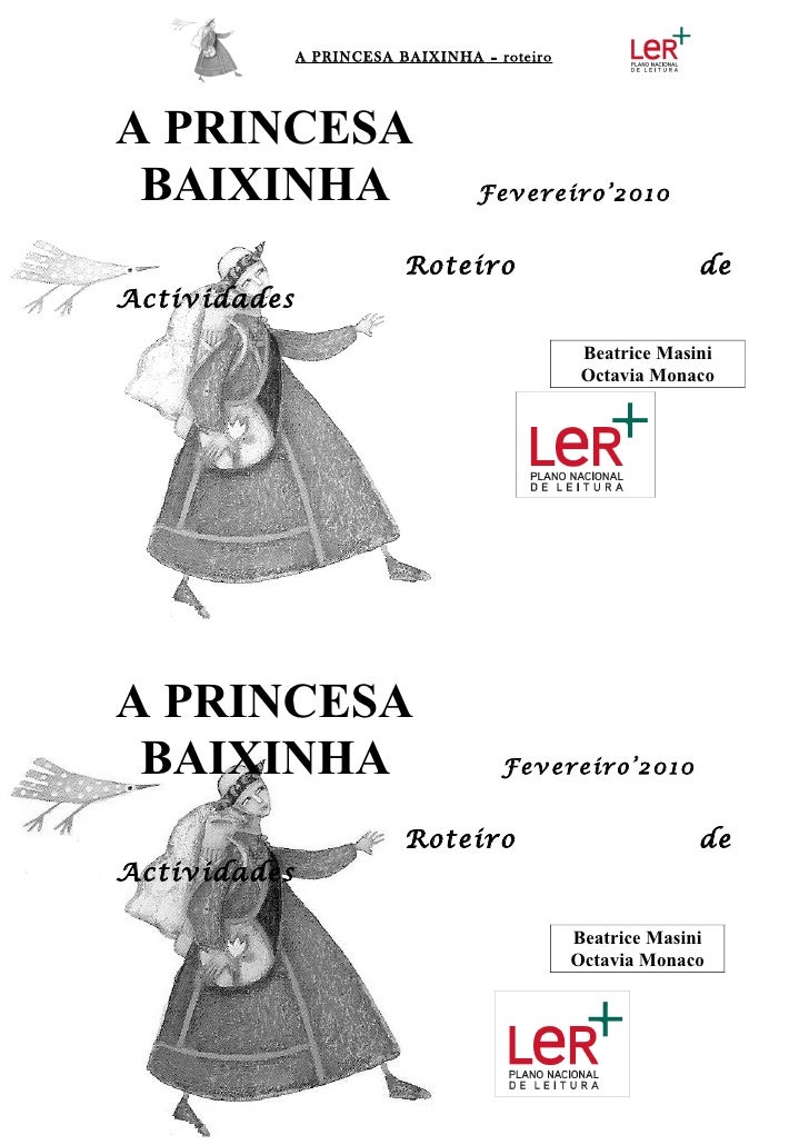 2. 2. A PRINCESA BAIXINHA – roteiroA PRINCESA BAIXINHA Fevereiro’2010 Roteiro deActividades Beatrice Masini Octavia MonacoA PRINCESA BAIXINHA Fevereiro’2010 Roteiro deActividades Beatrice Masini Octavia Monaco
