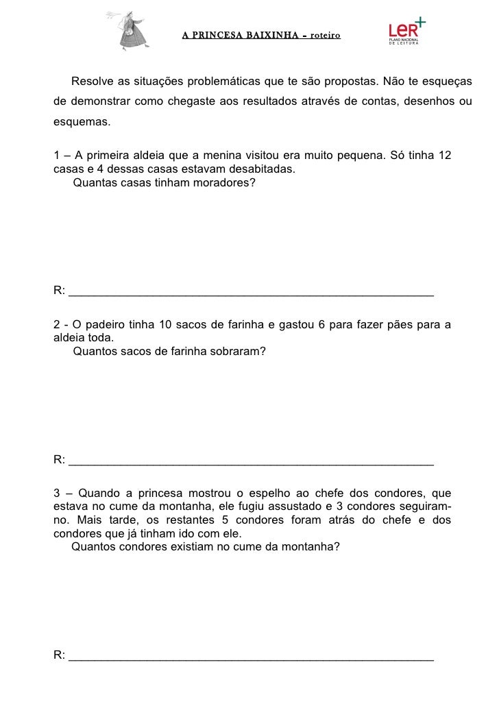 A PRINCESA BAIXINHA – roteiro   Resolve as situações problemáticas que te são propostas. Não te esqueçasde demonstrar como...